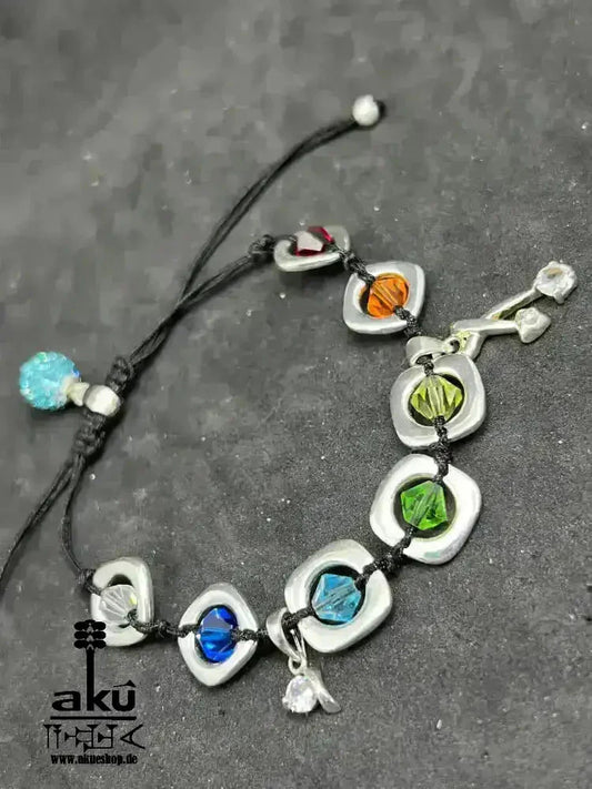 7 Chakras Kristalle Armband ,einstellbares Macreme Band, 925er Silber