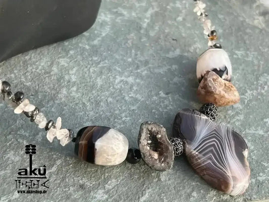 Achat & Rutilquarz Halskette, natürliche Roh Edelsteine, handgefertigter Schmuck geschenk