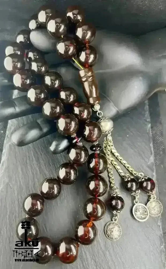 Alte riesige rote Bernstein-Gebetskette Prayer 19mm, Tasbih, islamisch Kehribar Misbaha