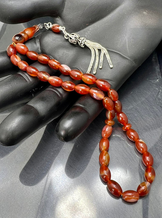 Akik Tasbih 33 natürlicher Achat Edelstein islamisches tasbeeh Misbaha, 925 Silber
