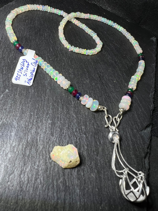 A+ Natürlich OPAL Lavalier Halskette, roher, Smaragd Rubin Saphir Edelsteine Heilungsenergie