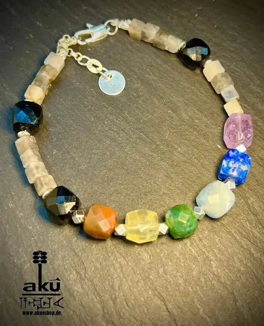 7 Chakren Armband, natürliche Labradorit Edelsteine, Meditationsenergie, 925er Silber