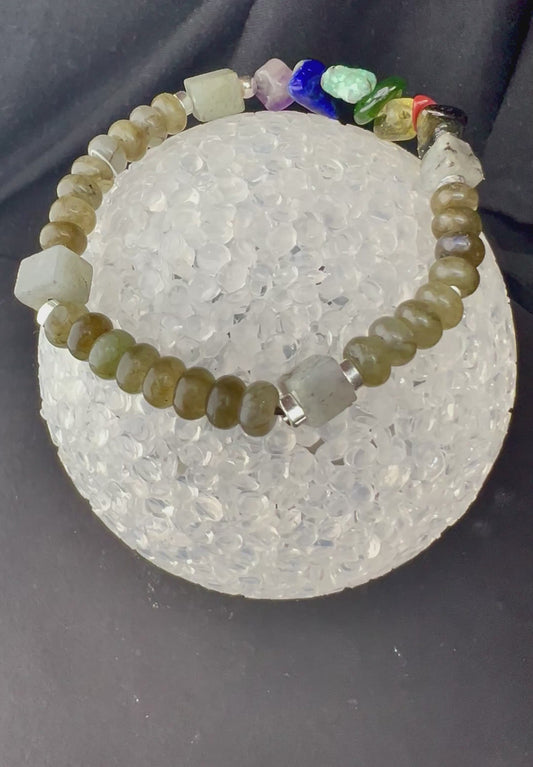 7 Chakren Armband, natürliche Labradorit Edelsteine, Meditationsenergie, 925er Silber
